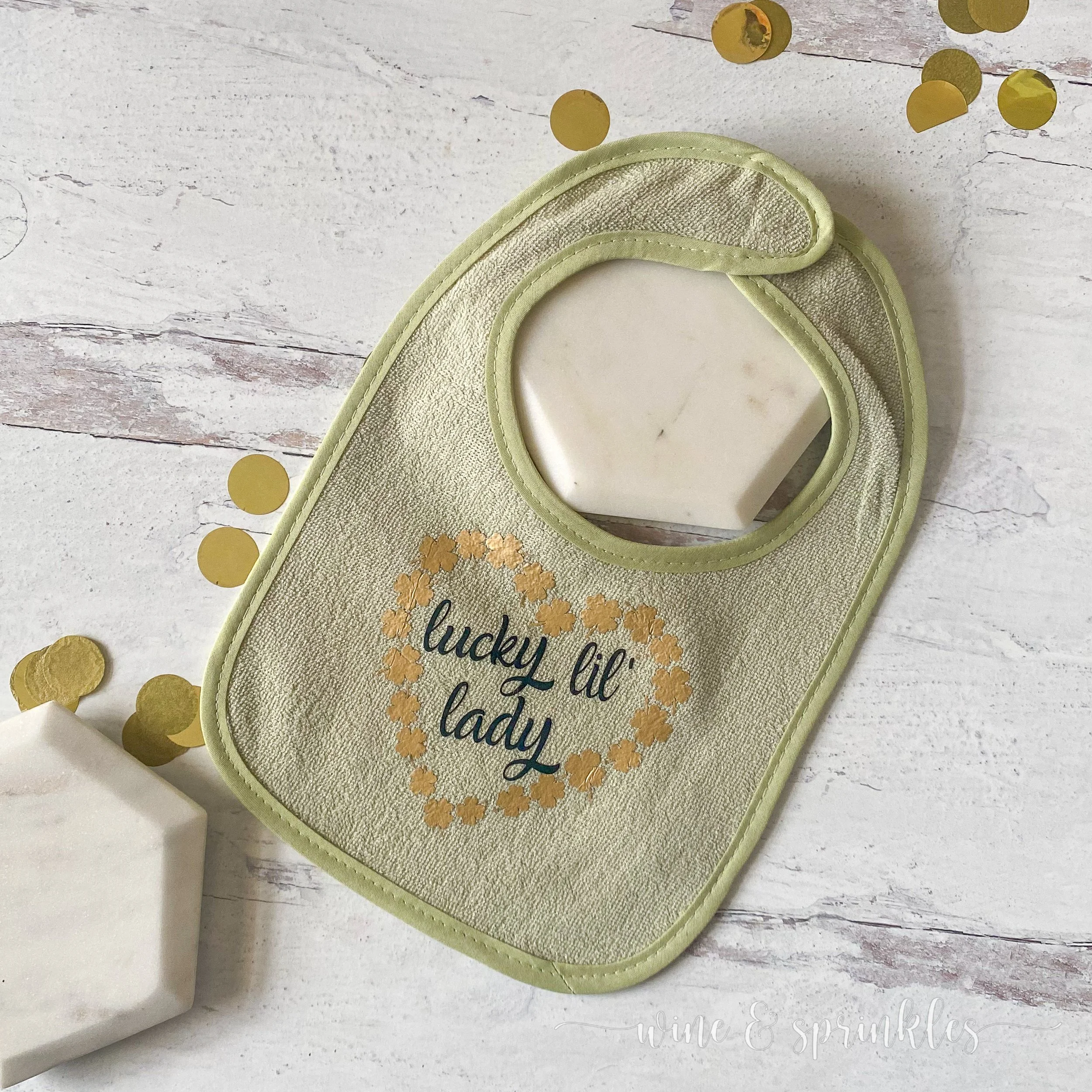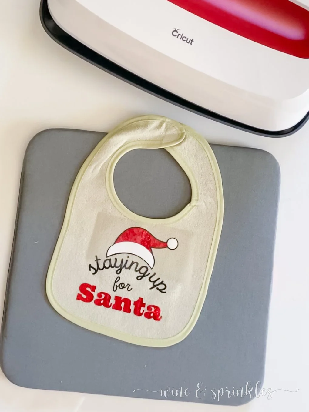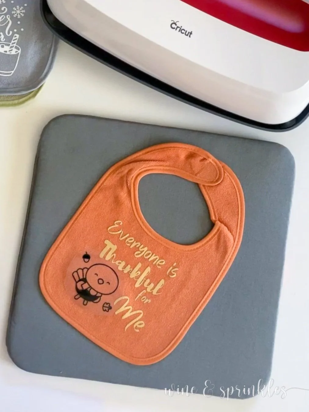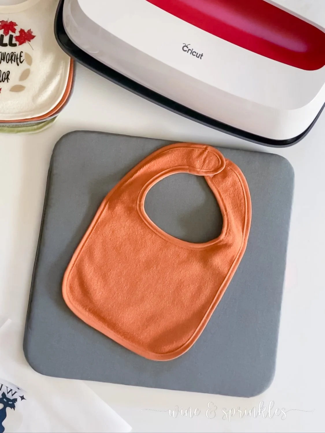 Cricut Heat Press: for transferring your decals to your bibs, you’ll need either a heat press or an iron, but I have to say I've been in love with my heat press since I first tried it! The Cricut Heat Guide makes it easy to always know what temperature and time to heat press my projects, which takes so much stress out of me worrying about scorching my fabrics! It’s also great and evenly and easily transferring all my decals, whether layered or not, and it’s a huge timesaver for mass making a bunch of HTV projects at once! When I made this and all sorts of different items for my Clothesline Basket Baby Gift, it made my assembly line of transferring and layering go quickly and smoothly with zero headaches!