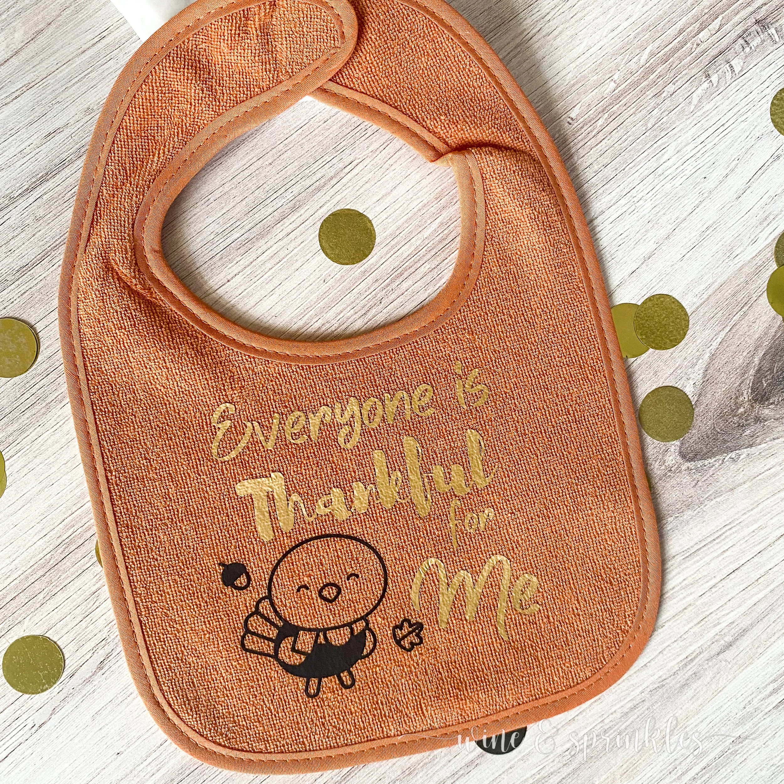 Tis the season for Bibs of all designs! When our dear friends were expecting their first little girl, I knew I wanted to make a Laundry Hamper Clothesline Baby Gift that had the clothing sets grow with the baby, but also include some seasonal fun too! Enter these HTV Seasonal Holiday Baby Bibs, a collection of dapper DIY bibs to wear as the baby grows, themed from spring to winter with lots of holidays in between!