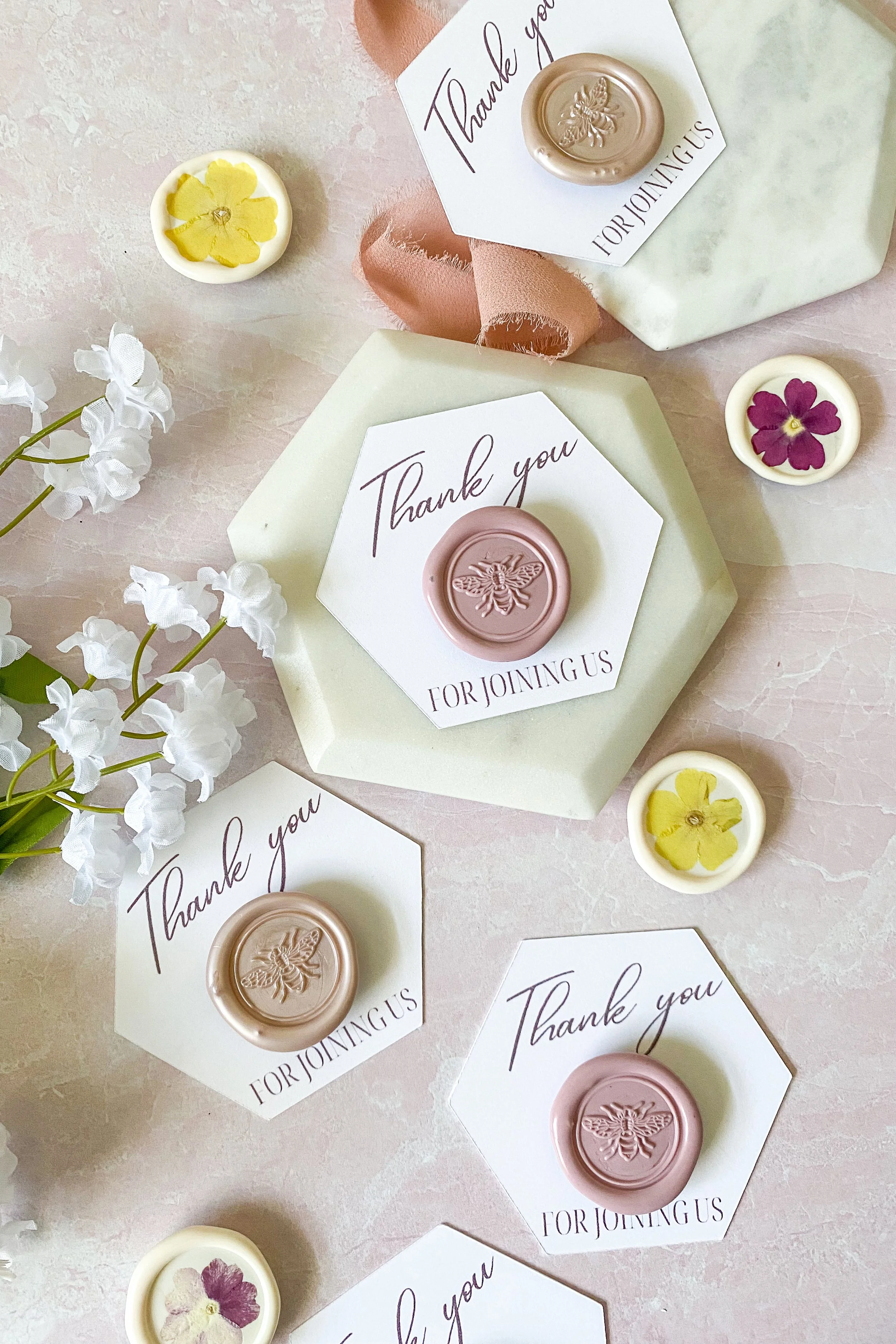 Whether you just make some for your friends or your own fridge, these bee-utiful favors are sure to impress your guests and are an easy way to start working with wax seals too! Below you can learn more about what I used and how I made my magnets, and I hope it inspires you to make a set all your own!